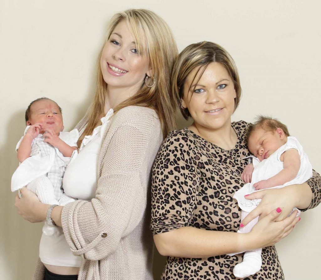 The new mums were also on the same ward and in opposite beds when the little cousins were born on Friday at the Royal Derby Hospital – both weighing 8lbs.