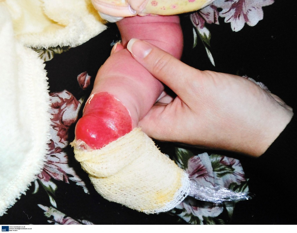 “I was frantic and I started crying. Her foot blistered over and we took her to hospital. I haven’t seen or heard from the midwife since.