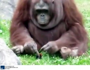 “Although they mainly eat fruit, it is not unknown for orangutan’s to eat small mammals and eggs.