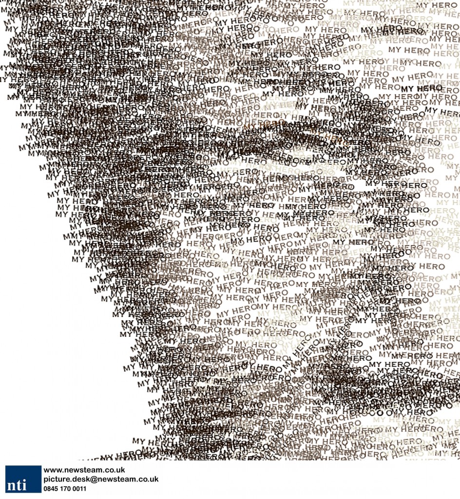 Made up of words describing how the artist feels about the image, the word ‘genius’ is used in tiny font to create an image of Vincent Van Gogh, while former president of South Africa and apartheid activist Nelson Mandela is made of the words ‘My Hero’.