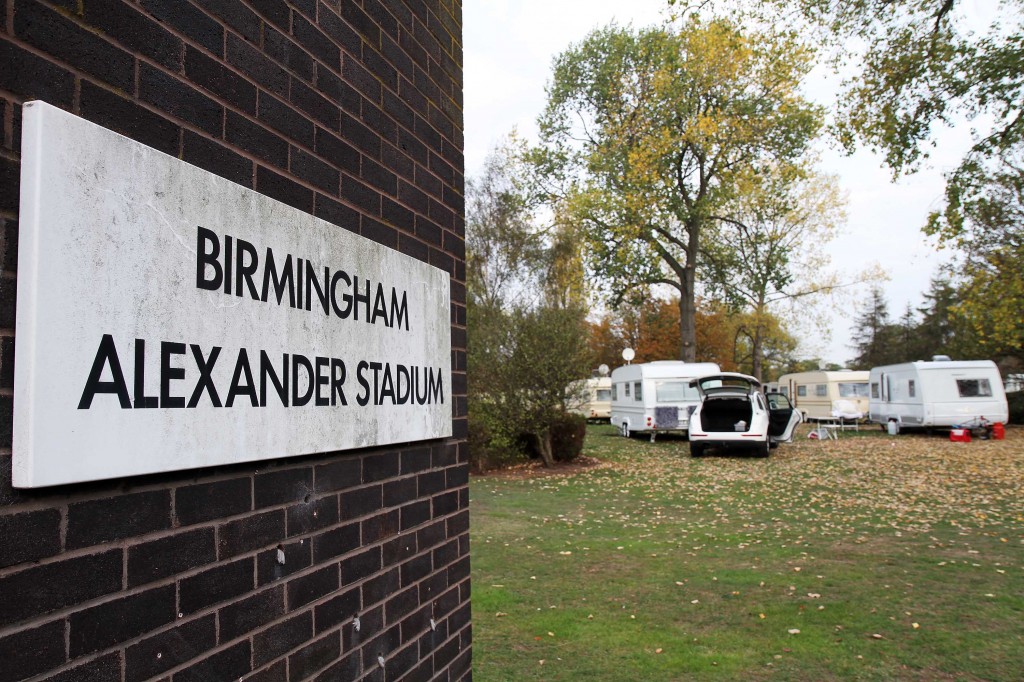 The travellers, believed to be French, set up camp yards from Birmingham’s Alexander Stadium – which will be home to the USA track and field team next summer.