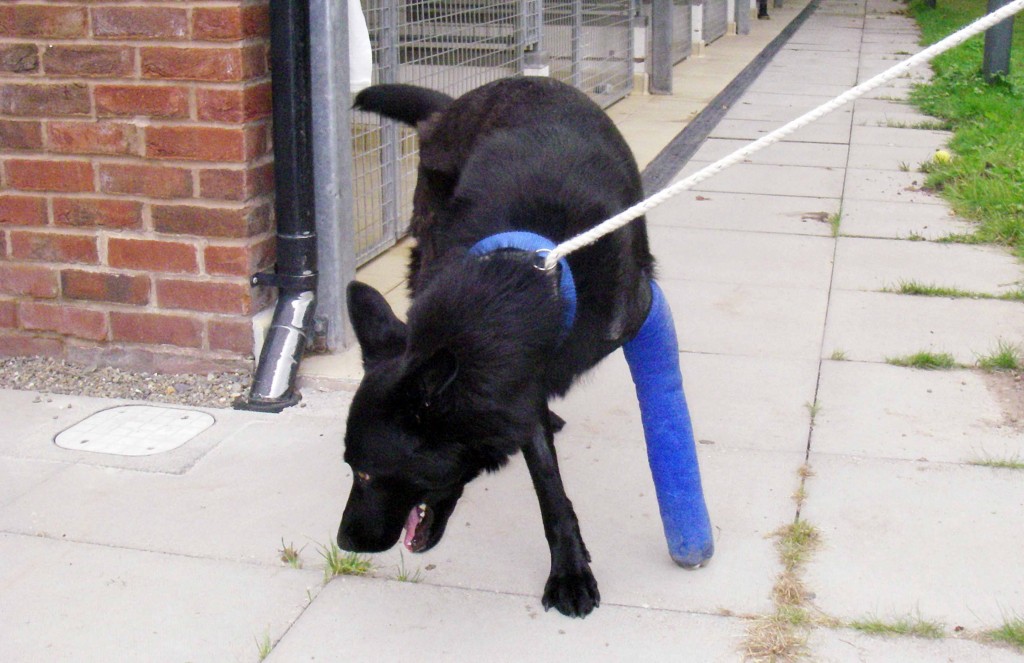 The cute canine suffered a fractured leg after dropping 15ft to the ground and faces a lifetime of pain after metal plates were put in place to keep her leg together.